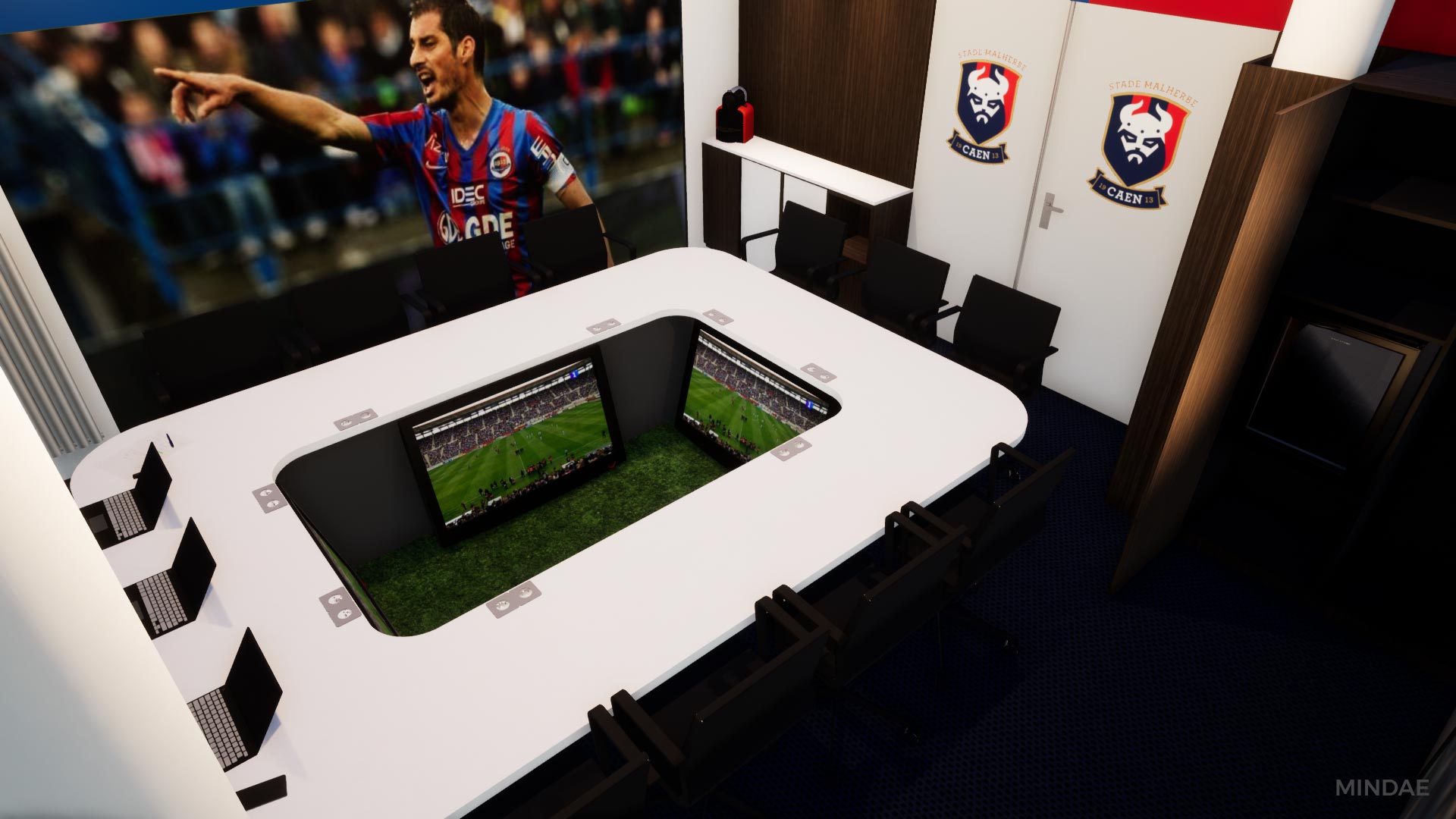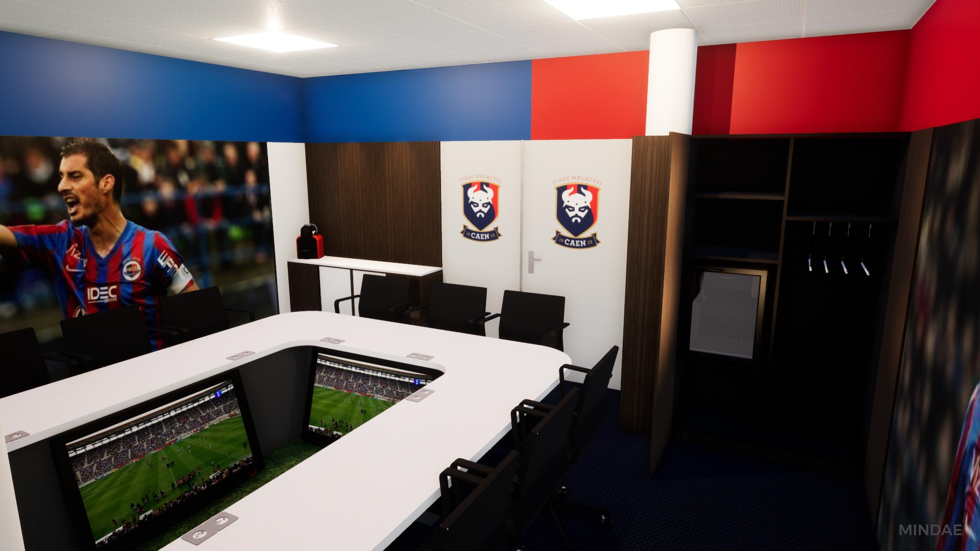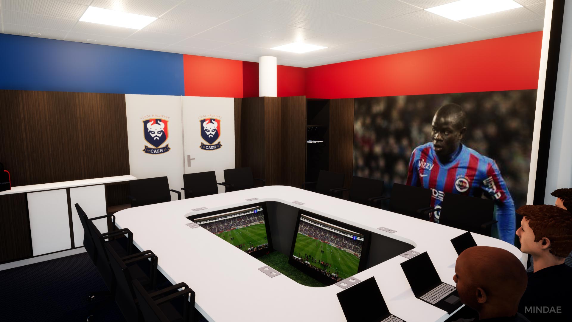 Texturing d’une salle de conférence du stade Malherbe pour le compte de la société AcomJ.